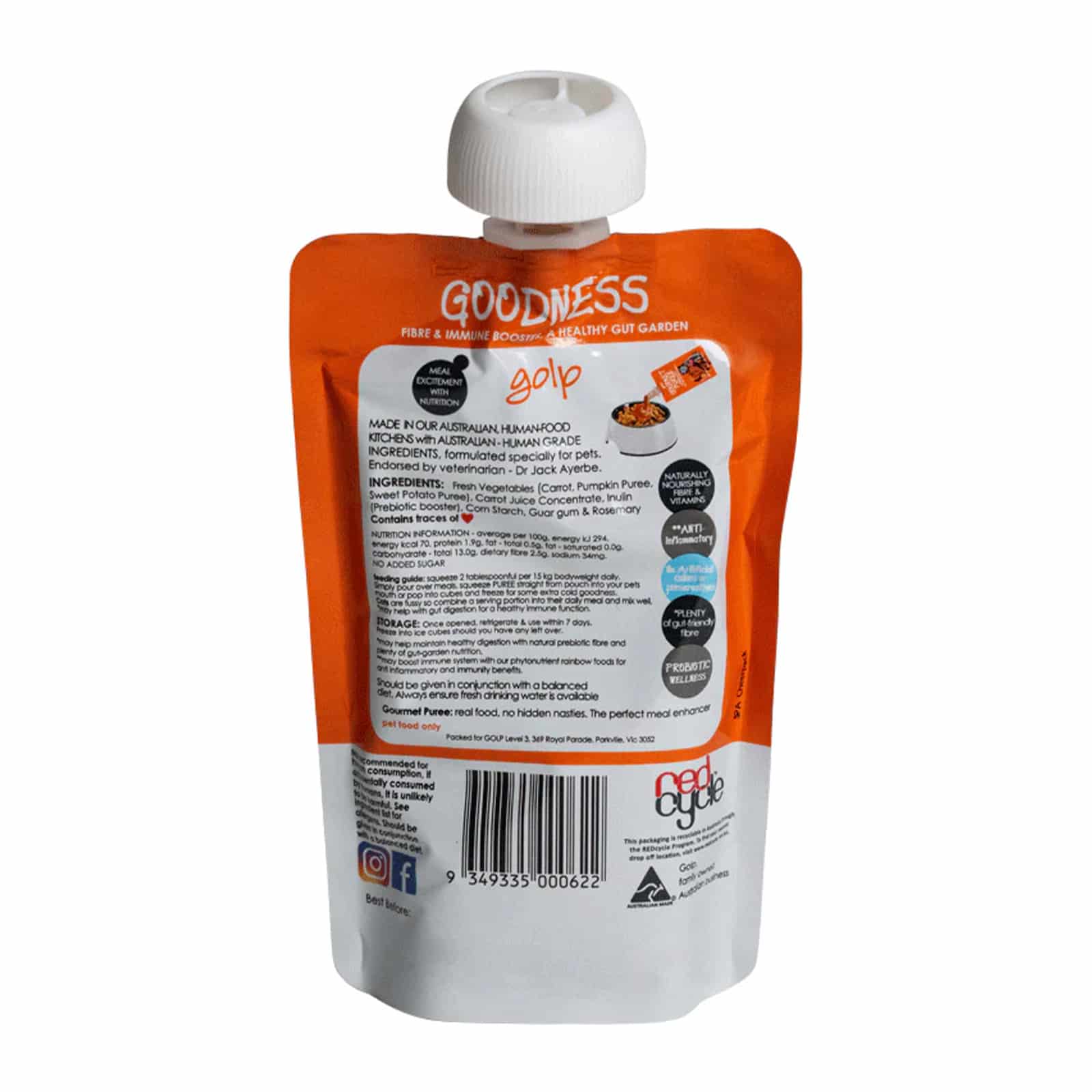 Golp Gourmet Puree Pumpkin Sweet Potato Carrot With Prebiotics Dietary Supplement For Dogs And Cats May Help to Maintain Optimal Digestive Health