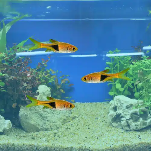 The Harlequin Rasbora (Trigonostigma heteromorpha) is a popular and visually striking freshwater fish known for its vibrant orange body and distinctive black triangle marking. These peaceful schooling fish thrive in groups of six or more, creating a dynamic and harmonious display in community aquariums. Ideal for beginner and experienced aquarists, Harlequin Rasboras are hardy, easy to care for, and well-suited for planted tanks.