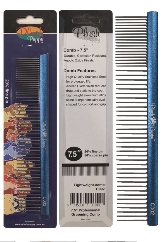 The Plush Puppy 50% Fine Pin Brush 7.5 Inch is a professional grooming comb is designed for precise and gentle care of your pet’s coat.