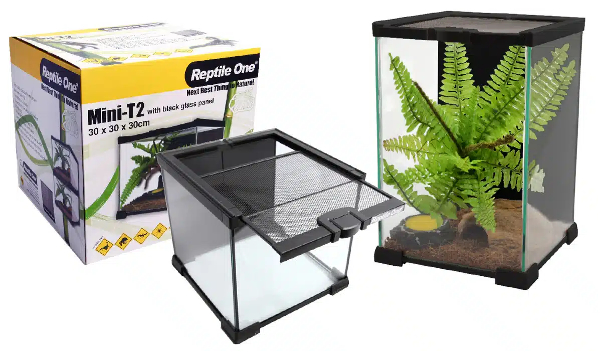 Set up your mini T2 terrarium with substrate, heating, and lighting suited to your pet’s needs. Ensure a proper humidity level is maintained and provide hiding spots for security. Clean the mini T2 terrarium regularly to maintain a healthy environment.
